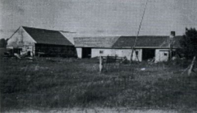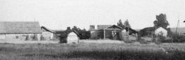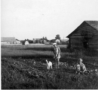 Kalevan tilan kasvimaalla.Taustalla Salakan talot. |