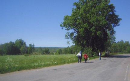 | Sankarihaudan muistomerkki. | Raivolan lehtikuusia. |