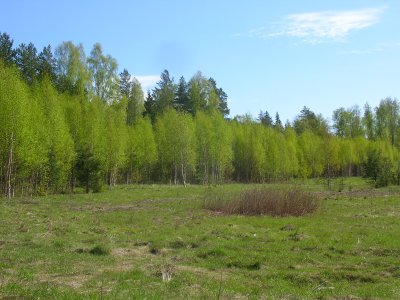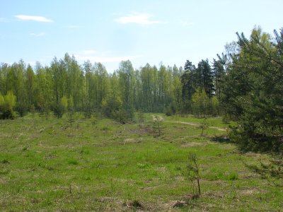 | Huumolan koivikkoa. | Hautausmaan muistomerkki. |